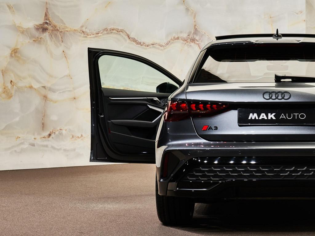 Het luxueuze design van de Audi A3 Sportback wordt versterkt door de exclusieve afwerking. Het Glanspakket (4ZB) voegt subtiele aluminium accenten toe aan het exterieur, wat bijdraagt aan een verfijnde uitstraling. Binnenin zorgt de Decorinleg in donker aluminium Spektrum (5MJ) voor een moderne en sportieve look. De S line sportstoelen in combinatie met het stijlvolle interieurontwerp benadrukken het premium karakter van deze auto.