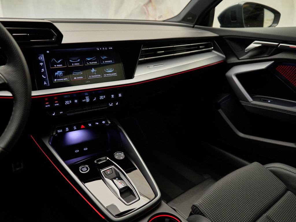 Het luxueuze design van de Audi A3 Sportback wordt versterkt door de exclusieve afwerking. Het Glanspakket (4ZB) voegt subtiele aluminium accenten toe aan het exterieur, wat bijdraagt aan een verfijnde uitstraling. Binnenin zorgt de Decorinleg in donker aluminium Spektrum (5MJ) voor een moderne en sportieve look. De S line sportstoelen in combinatie met het stijlvolle interieurontwerp benadrukken het premium karakter van deze auto.