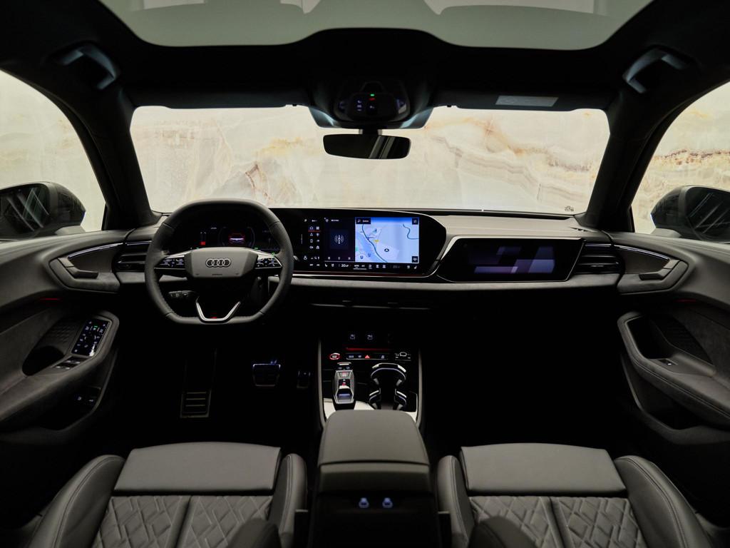 De cabine is uitgerust met het luxe interieur S line met sportstoelen plus in leder zwart (PWO). Dit pakket omvat ventilatie en massagefunctie voorin, stoelen met elektrisch verstelbare zitting, rugleuning en lendensteunen, geperforeerd nappaleder met ruitstiksels, verlichte instaplijsten met S-logo’s (VT5), ambiente lichtpakket plus (QQ2) én ambiente lichtpakket pro (QQ4). Ook inbegrepen: hemelbekleding in stof zwart (6NQ), chroomkleurige stuurapplicatie met S-logo (6F7) en een sportstuur, 3-spaaks, boven en onder afgevlakt met schakelpaddels (1XY).