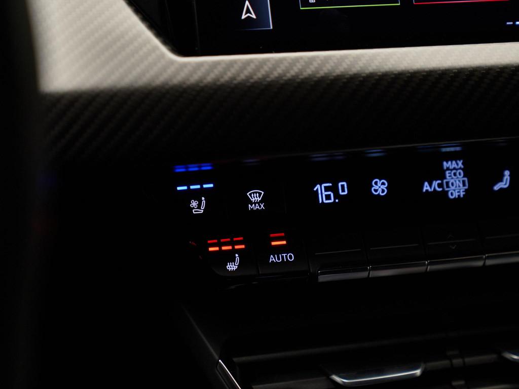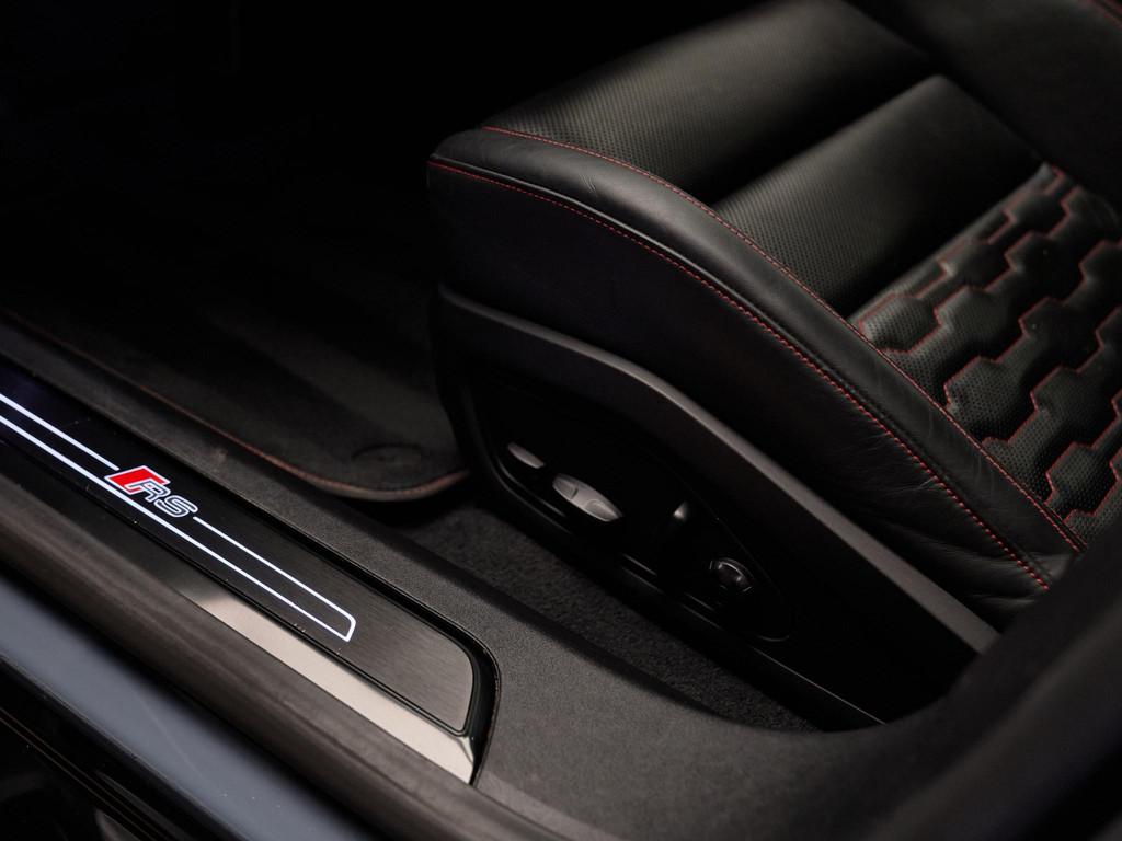 Binnenin wordt sportiviteit gecombineerd met luxe en innovatie. De sportstoelen vóór (Q1J) zijn elektrisch verstelbaar met geheugenfunctie (3L4) en voorzien van stoelverwarming (4A3) en stoelventilatie (4D3). Het RS Designpakket rood (PEF) en de carbon interieurinleg (5MH) creëren een uitgesproken sportieve ambiance, terwijl het multicolor ambiente lichtpakket (QQ2) het interieur een exclusieve sfeer geeft. De Climatronic met bediening achterin (KH5), warmtepomp (9M3) en uitgebreide pre-conditionering (GA2) zorgen voor optimaal comfort onder alle omstandigheden. Het Bang & Olufsen 3D Premium soundsystem (9VS) levert een indrukwekkende geluidsbeleving, terwijl het navigatiesysteem High (7UG), digitale radio-ontvangst DAB (QV3), Comfort telefonie (9ZE) en diverse connect-pakketten (IT3, IU1, JE3, IW3) garant staan voor optimale connectiviteit.