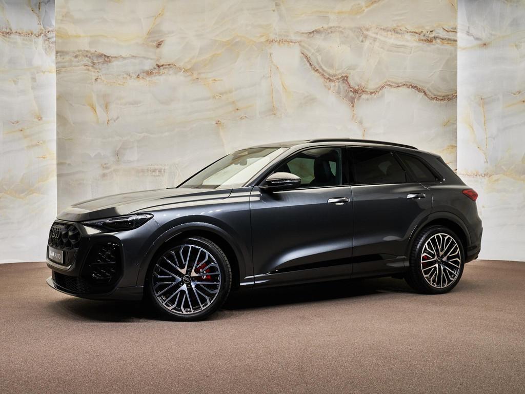 De Audi Sport multispaak-S velgen 21” (53A), gecombineerd met Daytonagrijs pareleffect (6Y6Y) en carbon decorlijsten met micro-twill structuur (5MK), geven deze Q5 een sportieve uitstraling. Het S-interieurpakket (PWO) met sportstoelen in geperforeerd leder met ruitstiksels en ambient lighting zorgen voor een luxe ambiance.