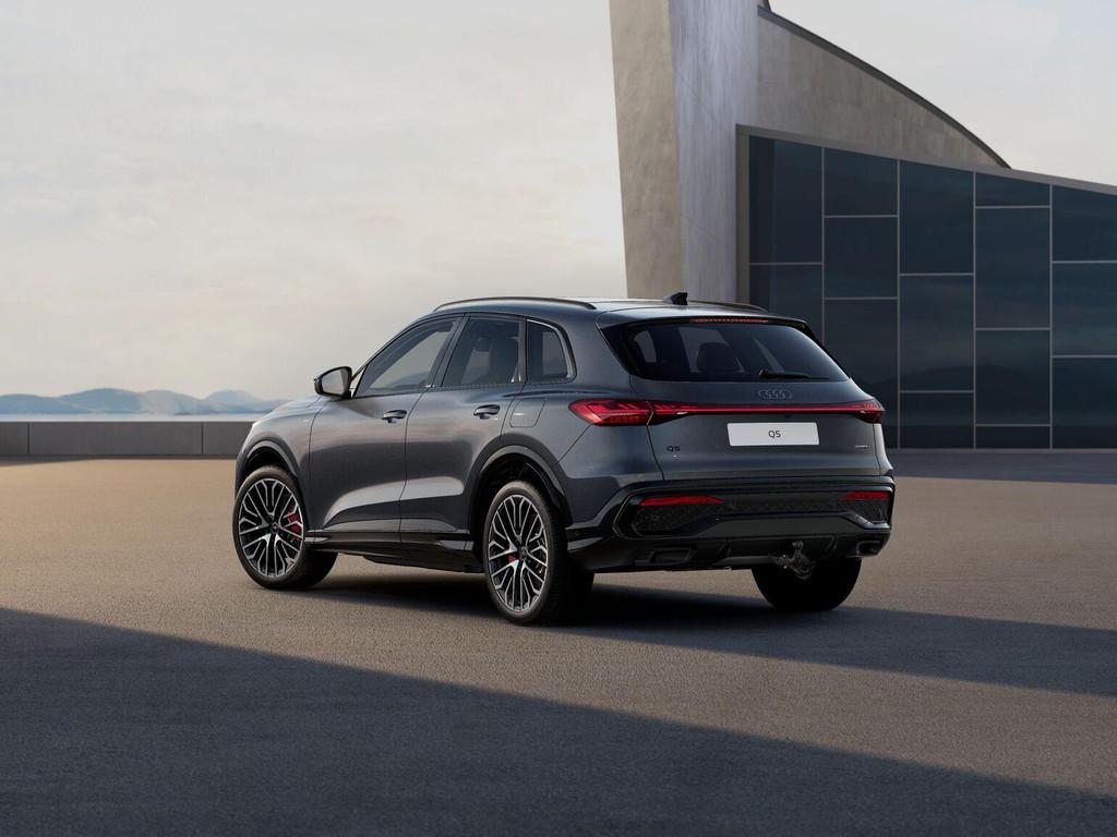 De Audi Sport multispaak-S velgen 21” (53A), gecombineerd met Tamboragrijs metallic (N7N7) en carbon decorlijsten met micro-twill structuur (5MK), geven deze Q5 een sportieve uitstraling. Het S-interieurpakket (PWO) met sportstoelen in geperforeerd leder met ruitstiksels en ambient lighting zorgen voor een luxe ambiance.
