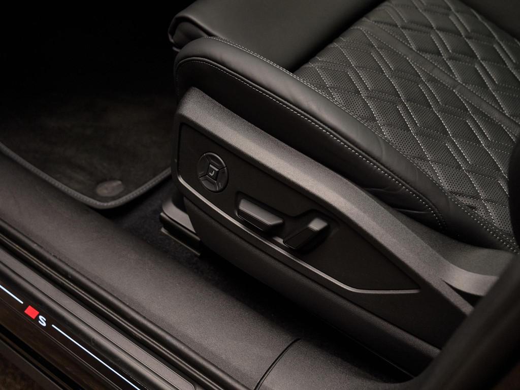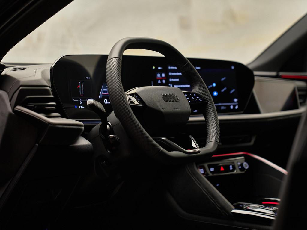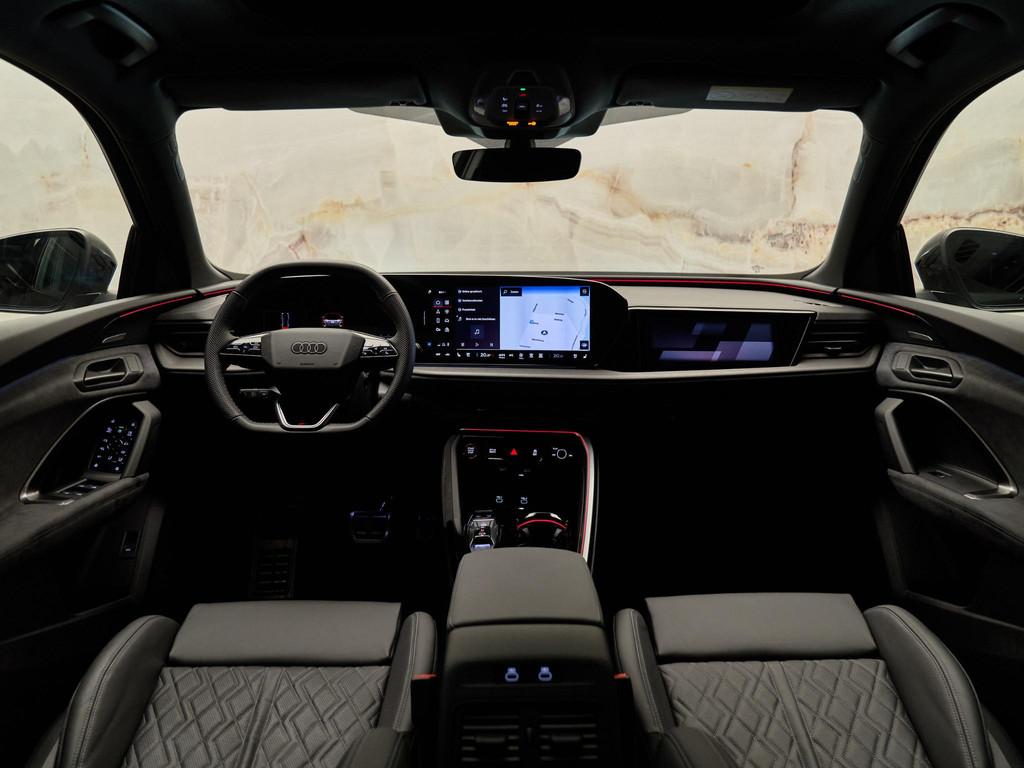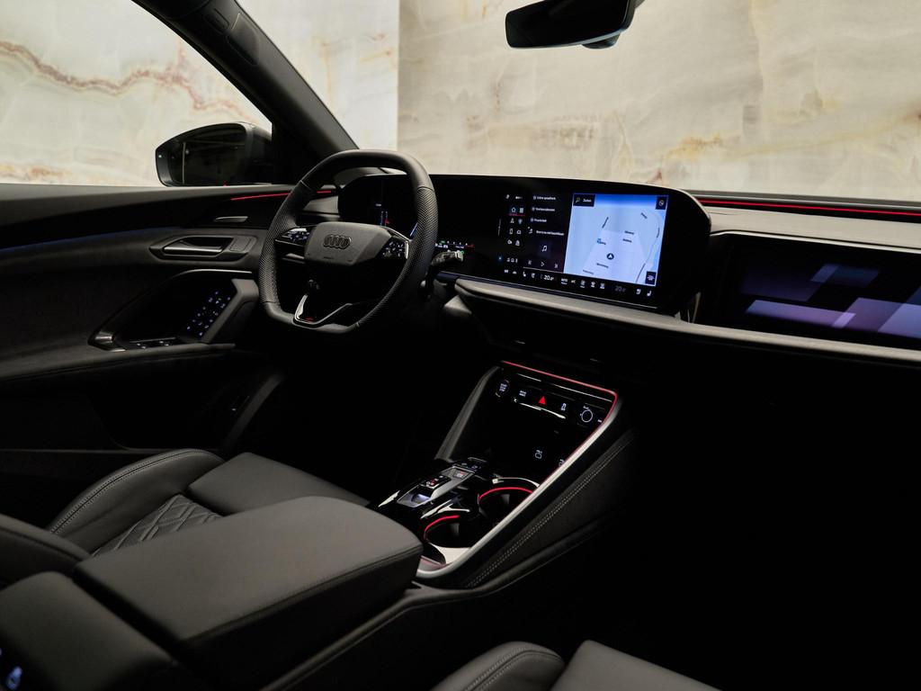De Audi Sport multispaak-S velgen 21” (53A), gecombineerd met Mythoszwart metallic (0E0E) en carbon decorlijsten met micro-twill structuur (5MK), geven deze Q5 een sportieve uitstraling. Het S-interieurpakket (PWO) met sportstoelen in geperforeerd leder met ruitstiksels en ambient lighting zorgen voor een luxe ambiance.
