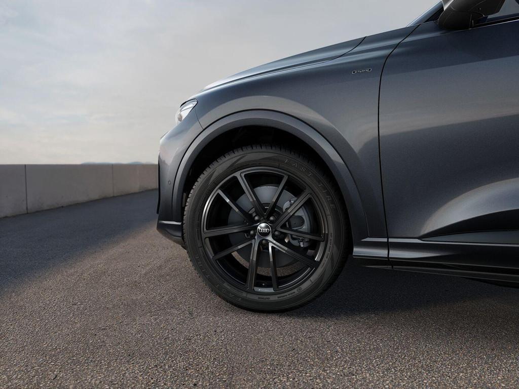 Het sportieve design wordt versterkt door het S line exterieur (PY2), Exterieurpakket zwart (PAH), zwarte dakrails (3S2), privacy glas (QL5) en de 20 inch lichtmetalen Audi Sport velgen (U19 / FQ1). De Matrix LED-koplampen (8G4) met digitale lichtsignaturen (LW1) en LED-achterlichten pro (8VP) zorgen voor een krachtige uitstraling en uitstekend zicht.