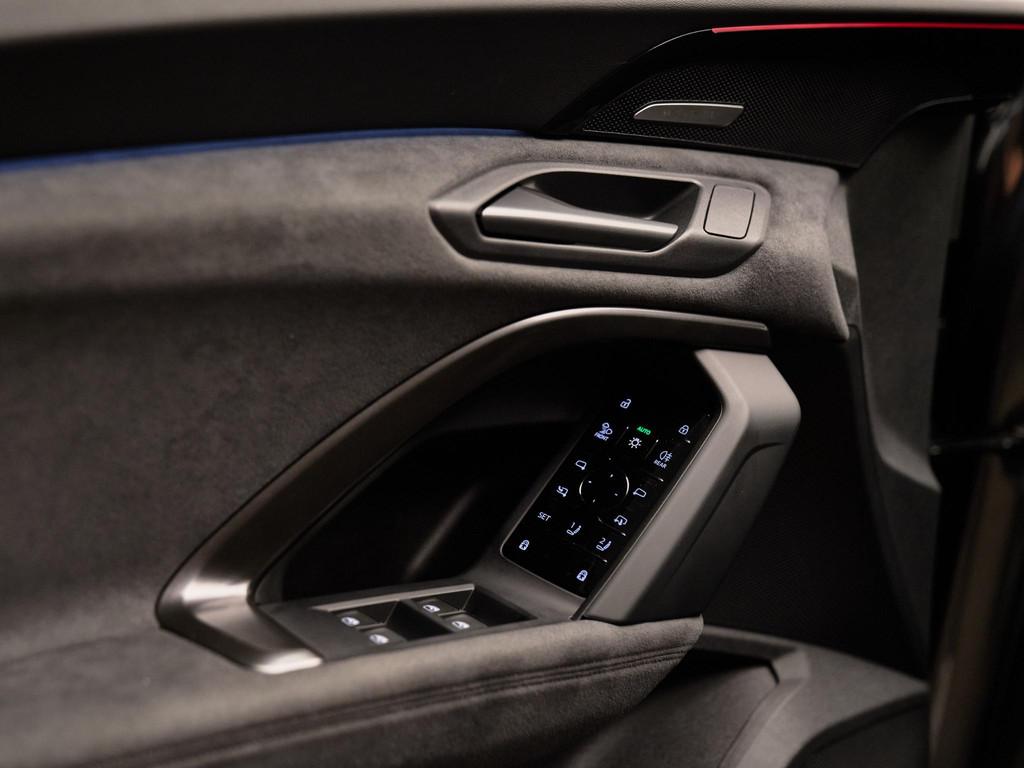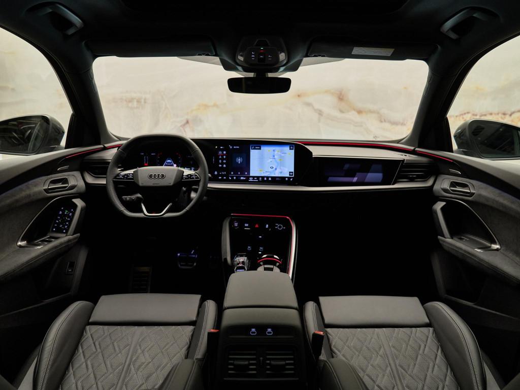 De Audi Sport multispaak-S velgen 21” (53A), gecombineerd met Daytonagrijs pareleffect (6Y6Y) en carbon decorlijsten met micro-twill structuur (5MK), geven deze Q5 een sportieve uitstraling. Het S-interieurpakket (PWO) met sportstoelen in geperforeerd leder met ruitstiksels en ambient lighting zorgen voor een luxe ambiance.