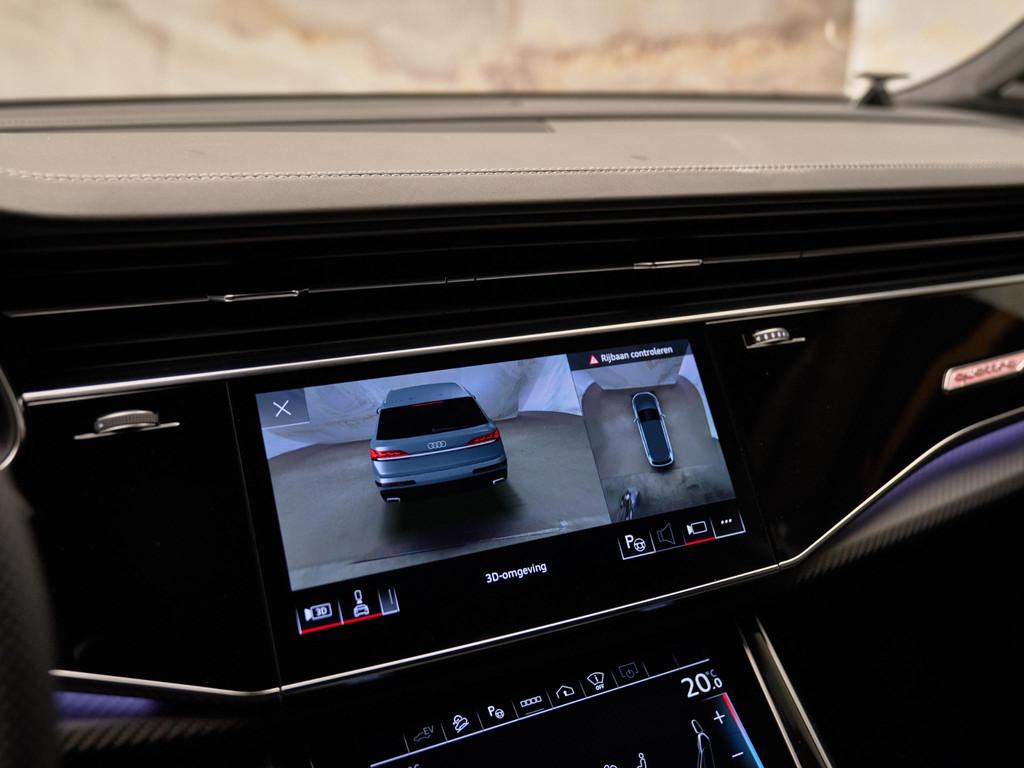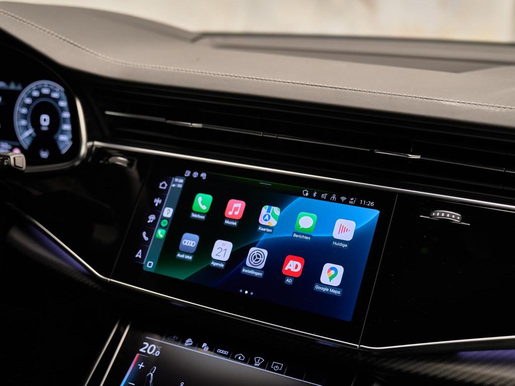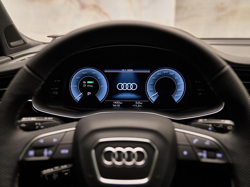 De Q7 is volledig connected met Audi connect Navigatie & Infotainment (IT3) en Audi connect Noodoproep & Service + Remote & Control (IW3). De Audi phone box (9ZE) met 4G-ondersteuning (GB1) zorgt voor betere signaalontvangst en inductieladen; Audi connect key (2F1) maakt smartphone-toegang mogelijk. Het audiosysteem is opgewaardeerd naar Bang & Olufsen Advanced 3D (8RF) voor een concertzaalervaring, aangevuld met Audi virtual cockpit (9S8), Audi-appstore & smartphone-interface (IU4), DAB+ (QV3) en DVD-speler (7D5). Head-up display (KS1) projecteert essentiële info in uw blikveld.