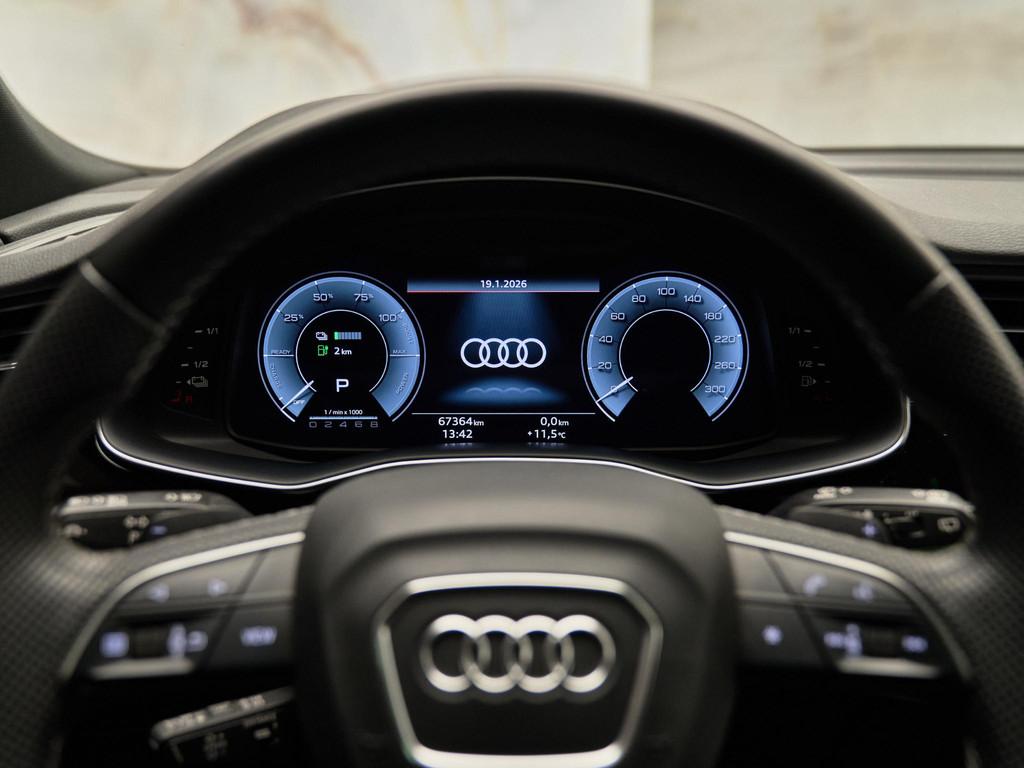 Op technologisch vlak is deze Audi zeer compleet uitgerust met MMI Navigatie plus (7UG), een Head-up display (KS1), Audi virtual cockpit (9S8) en DAB+ digitale radio (QV3). Dankzij Audi connect Plus (JE3) en de diverse Audi connect-pakketten (IT3, IU1, IW3) blijft u altijd verbonden. Het 360° camerasysteem (KA6) in combinatie met de multifunctionele camera (QK1) biedt maximaal overzicht en gemak bij manoeuvreren en parkeren.