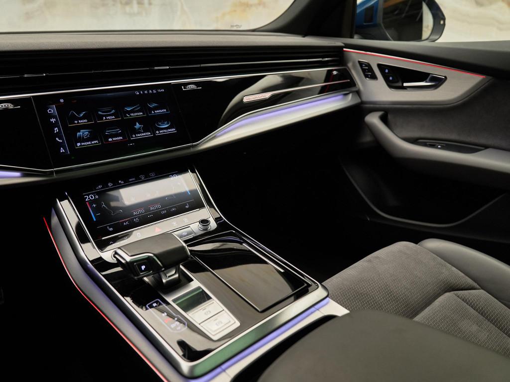 Dit betreft een zeer luxe en uniek uitgevoerde Audi Q8 55 TFSI e Quattro (381 pk). Kleur exterieur: Galaxisblauw metallic (S1S1) en interieur: Alcantara/leder combinatie met S-logo (N7K). Deze auto heeft slechts 67.364 km gereden, is volledig dealeronderhouden en verkeerd in zeer goede staat. Uiteraard is alle documentatie aanwezig. Voorzien van vele opties zoals: