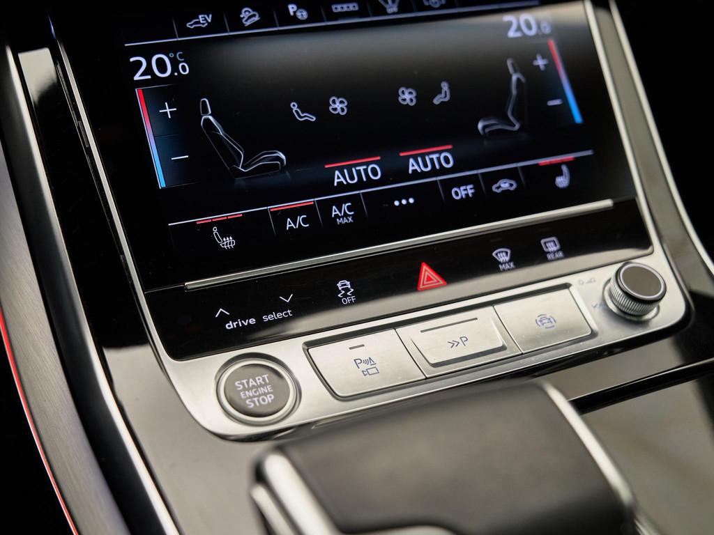 Het sportieve en elegante design wordt versterkt door het S line exterieurpakket, 22 inch Audi Sport lichtmetalen velgen (53W / FQ1), Matrix LED-koplampen (PXC) en LED-achterlichten (8SQ). Verder beschikt de auto over privacyglas achter (QL5), dakrails in aluminium (3S1), instaplijsten met aluminium inzet (VT5) en elektrisch verstelbare, verwarmde en zelfdimmende buitenspiegels met geheugenfunctie (6XL). De Adaptive air suspension sport (2MA) zorgt bovendien voor optimaal rijcomfort en een dynamische uitstraling.
