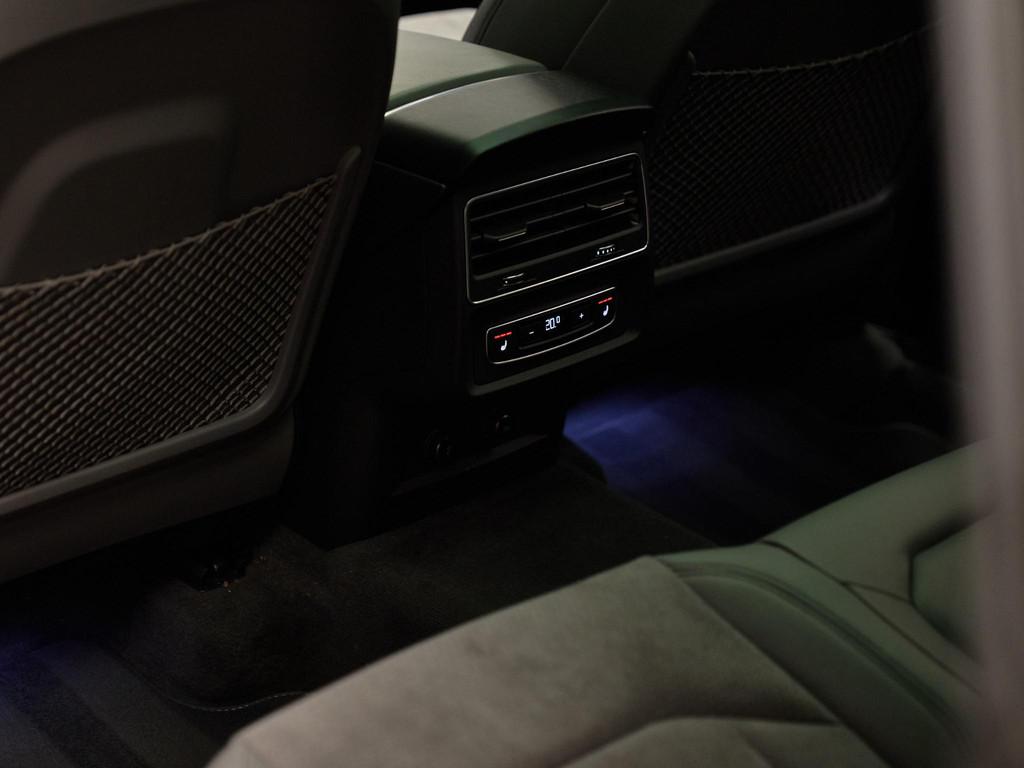 Het interieur is uitgevoerd met sportstoelen vóór (Q1D), bekleed met Alcantara/leder (N7K) en biedt een hoog niveau van comfort en ondersteuning. Zowel bestuurder als bijrijder beschikken over elektrisch verstelbare stoelen met geheugenfunctie (3PN / PV6). Daarnaast is de auto uitgerust met stoelverwarming vóór en achter (4A4), een 4-zone automatische airconditioning (9AU) met bediening achterin en een lucht-ionisator en fijnstoffilter (2V9) voor een aangenaam en gezond binnenklimaat. Het panoramisch glazen dak (3FU) zorgt voor extra licht en een ruimtelijk gevoel.