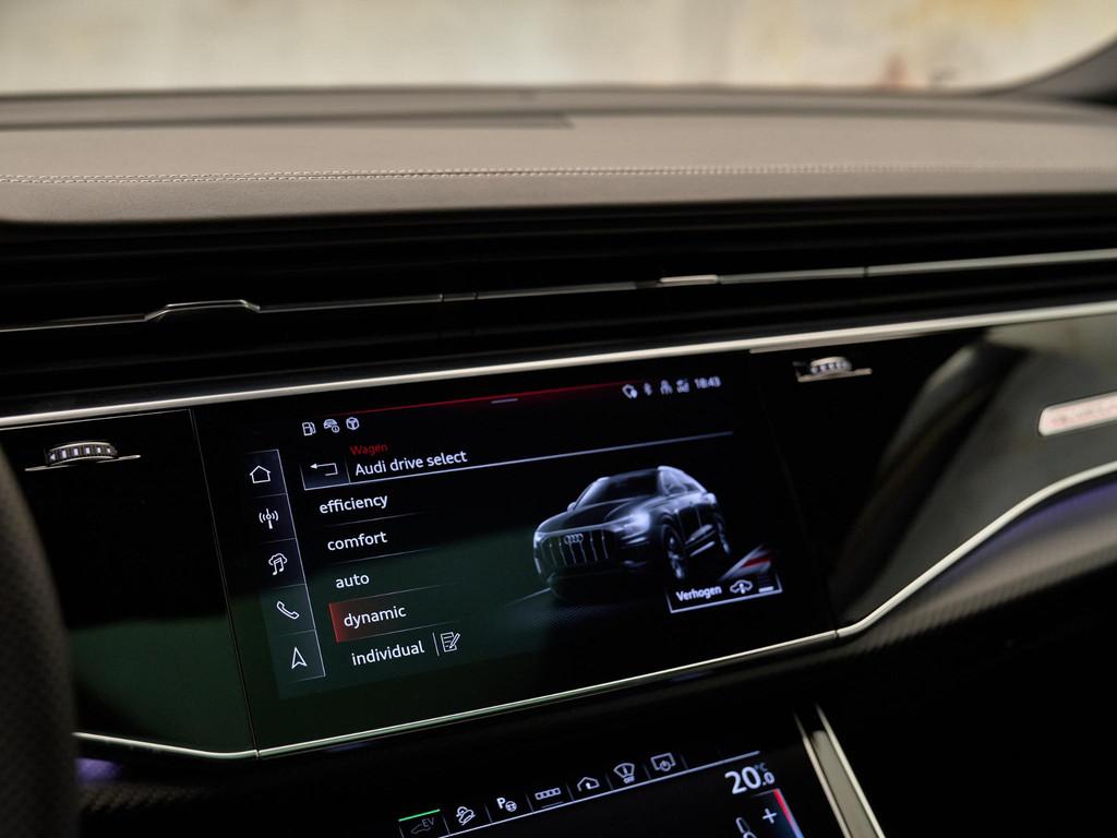 De Audi Q8 biedt futuristische functionaliteiten zoals de HD Matrix LED-koplampen (PXB), adaptieve cruise control (8T5), en de geavanceerde head-up display (KS1). Met de elektrisch verstelbare sportstoelen plus (Q4Q) en het Bang & Olufsen Premium Sound System (9VS) geniet u van comfort en entertainment op topniveau.