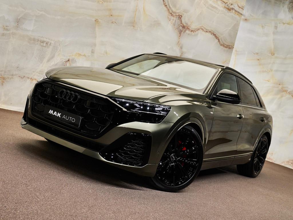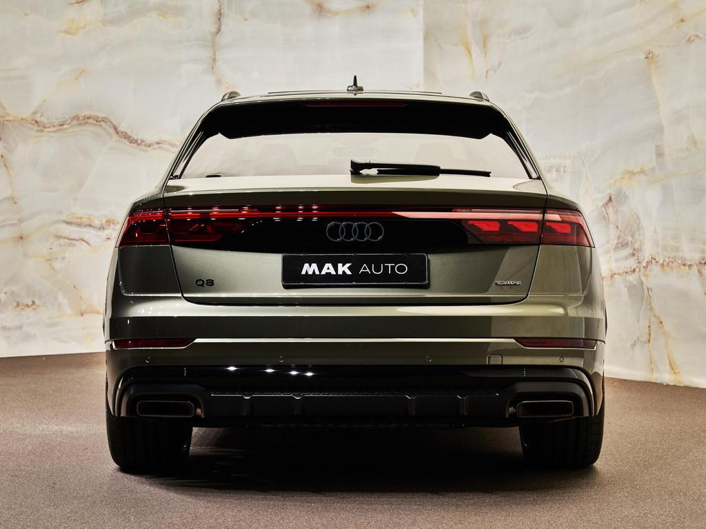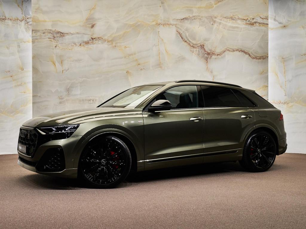 Dit betreft een zeer luxe en krachtig uitgevoerde Audi Q8 60 TFSI e Quattro S-tronic (490 pk) Pro Line S Competition. Kleur exterieur: Oak Green Pearl Effect (Audi Exclusive, Q0Q0) en interieur: Leder Valcona met S-logo's en stiksels in ruitpatroon (N0Q). Deze auto heeft slechts 14.478 km gereden en verkeerd in zeer goede staat . Uiteraard is alle documentatie aanwezig. Nieuwprijs circa € 170.000! Voorzien van vele opties zoals: