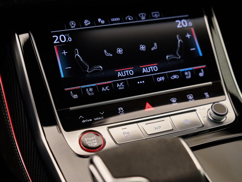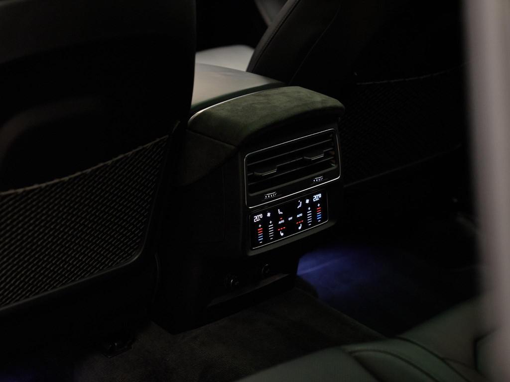 Voor optimaal zitcomfort is deze RS Q8 voorzien van RS-sportstoelen vóór in leder Valcona, geperforeerd met honingraatstiksel (PEH), inclusief ventilatie en massagefunctie (4D8), elektrische verstelling met geheugenfunctie (3PN) en stoelverwarming vóór en achter (4A4). De vierzone automatische airconditioning (9AE) zorgt voor een aangenaam klimaat, terwijl de hemelbekleding in zwart alcantara (PL2 / 6NS) en decorinleg in carbon (5MH) het interieur een sportief en exclusief karakter geven. Dankzij de elektrische achterklep met sensorgestuurde opening (4E7), Comfort key met Keyless Entry (PG3) en sluithulp op de portieren (GZ2) geniet u van maximaal gebruiksgemak in het dagelijks rijden.