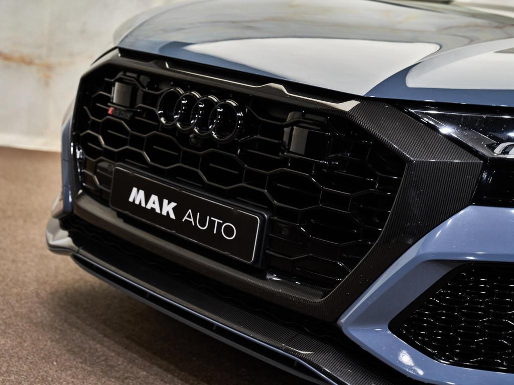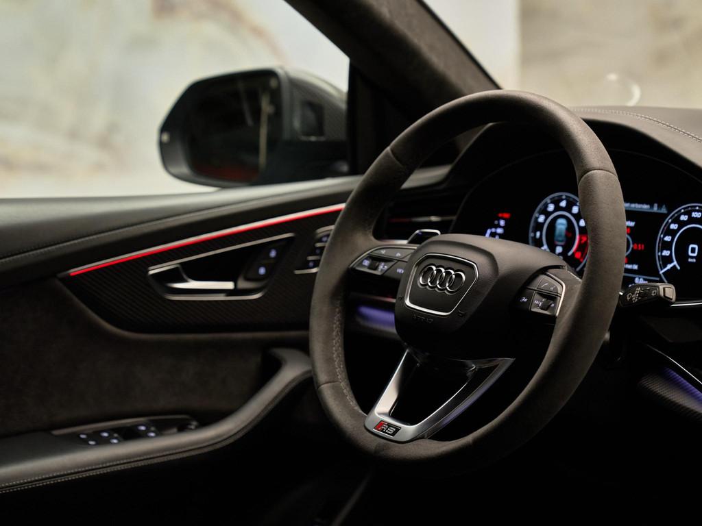 De RS Q8 straalt pure kracht en sportiviteit uit dankzij het Optiekpakket zwart/carbon (PQA) en de 23” Audi Sport lichtmetalen velgen (C2X). De HD Matrix LED-koplampen (PXC) met dynamische richtingaanwijzers en de achterlichten in LED-techniek (8SQ) zorgen voor een onderscheidende lichtsignatuur. De privacybeglazing (QL5), verlichte RS-instaplijsten (VT2) en carbon exterieuraccenten versterken het exclusieve karakter. De voorruit van isolerend glas (4GL) en buitenspiegels elektrisch inklapbaar, verwarmbaar en automatisch dimmend met geheugenfunctie (6XL) completeren de hoogwaardige afwerking.