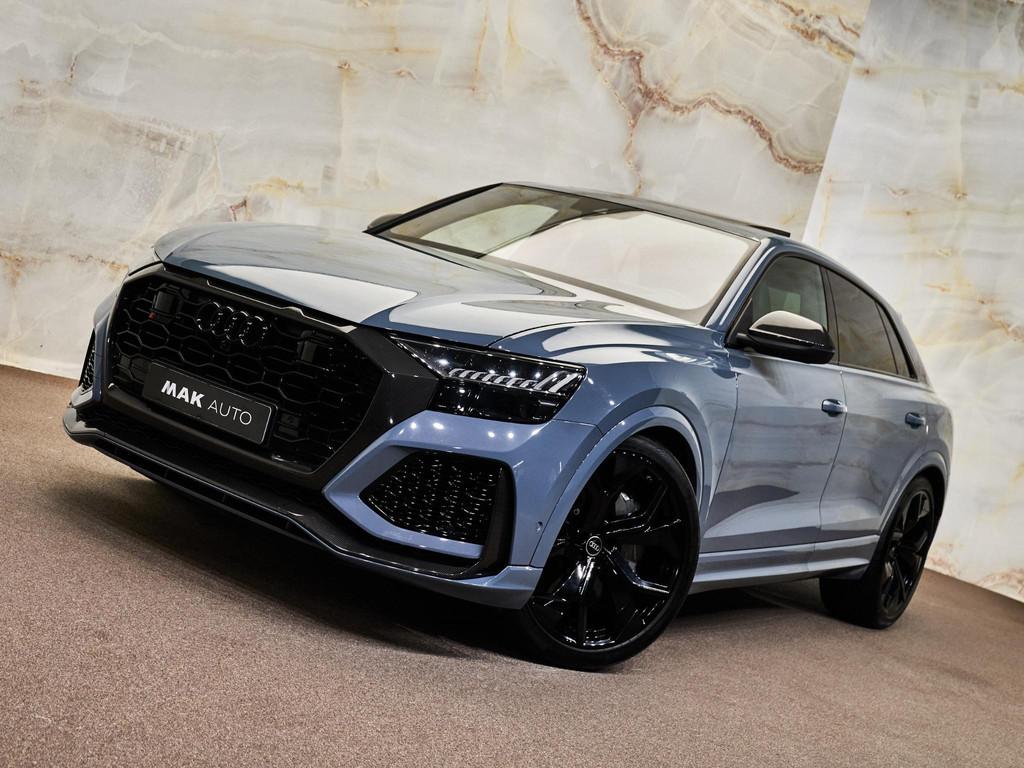 Dit betreft een zeer luxe en krachtig uitgevoerde Audi RS Q8 4.0 TFSI Quattro (600 pk). Kleur exterieur: Kemoragrijs metallic (Q0Q0, Audi Exclusive) en interieur: Leder Valcona met honingraatstiksel (PEH). Deze auto heeft slechts 43.255 km gereden en uiteraard is alle documentatie aanwezig. Nieuwprijs circa € 286.000,-. Voorzien van vele opties zoals: