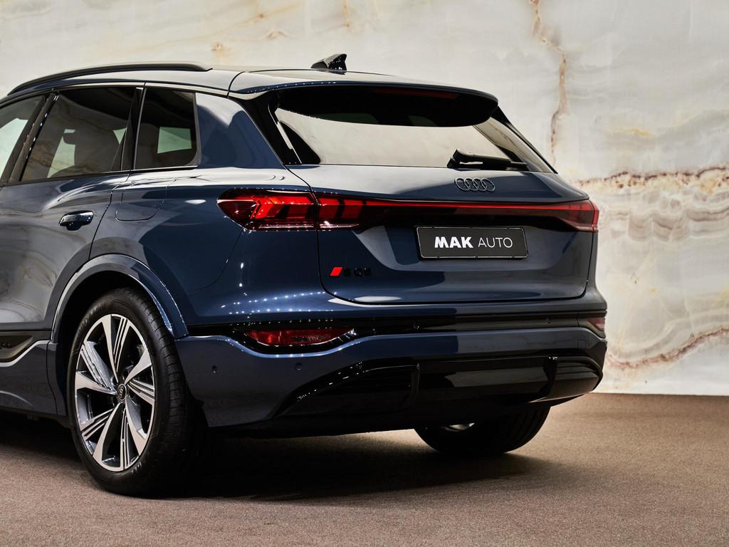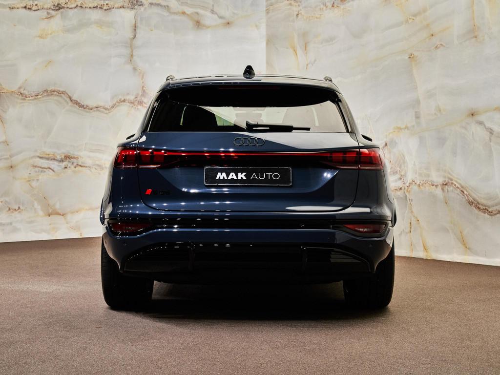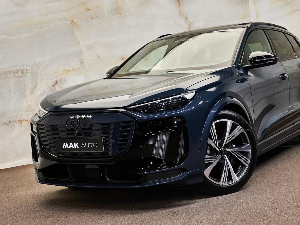 de Plasmablauw metallic (3D3D) lak in combinatie met het Zwart optiekpakket (PAH) en de 21” lichtmetalen velgen (46X) geeft de SQ6 e-tron een krachtige en sportieve uitstraling. De Privacybeglazing (QL5), Matrix LED-koplampen (PXC) en Digitale OLED-achterlichten (8VY) met dynamische animatie zorgen voor een opvallende lichtsignatuur. De Dakreling zwart (3S2) en de donkere Audi-ringen (4ZP) onderstrepen het sportieve karakter, terwijl het Panoramadak (3FU) het interieur vult met licht en ruimte.