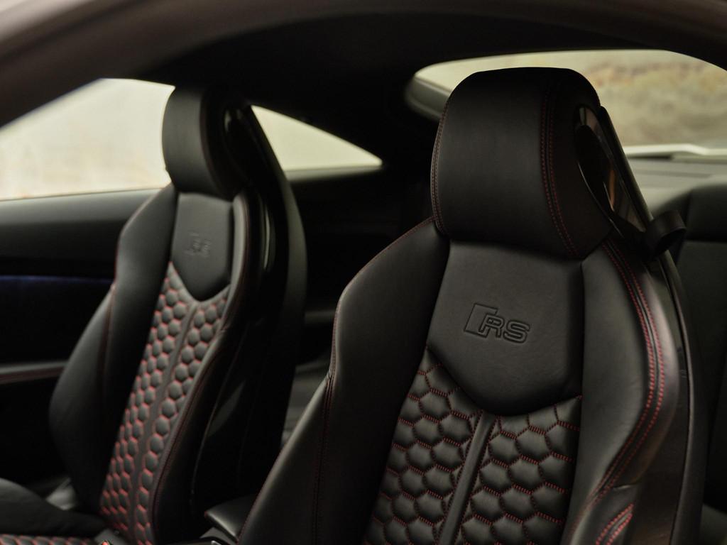 De Audi TT RS Coupé onderscheidt zich door zijn Optiekpakket Zwart (PAJ), de rode remzadels met RS-logo (PC2) en de Audi Sport lichtmetalen velgen 9J x 20 in 7-spaak-rotor-design (CT1). De aerodynamische prestaties worden verbeterd door de vaste RS-achterspoiler (5J2) en voorbumper met RS-design (5L3).
