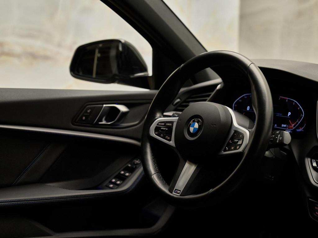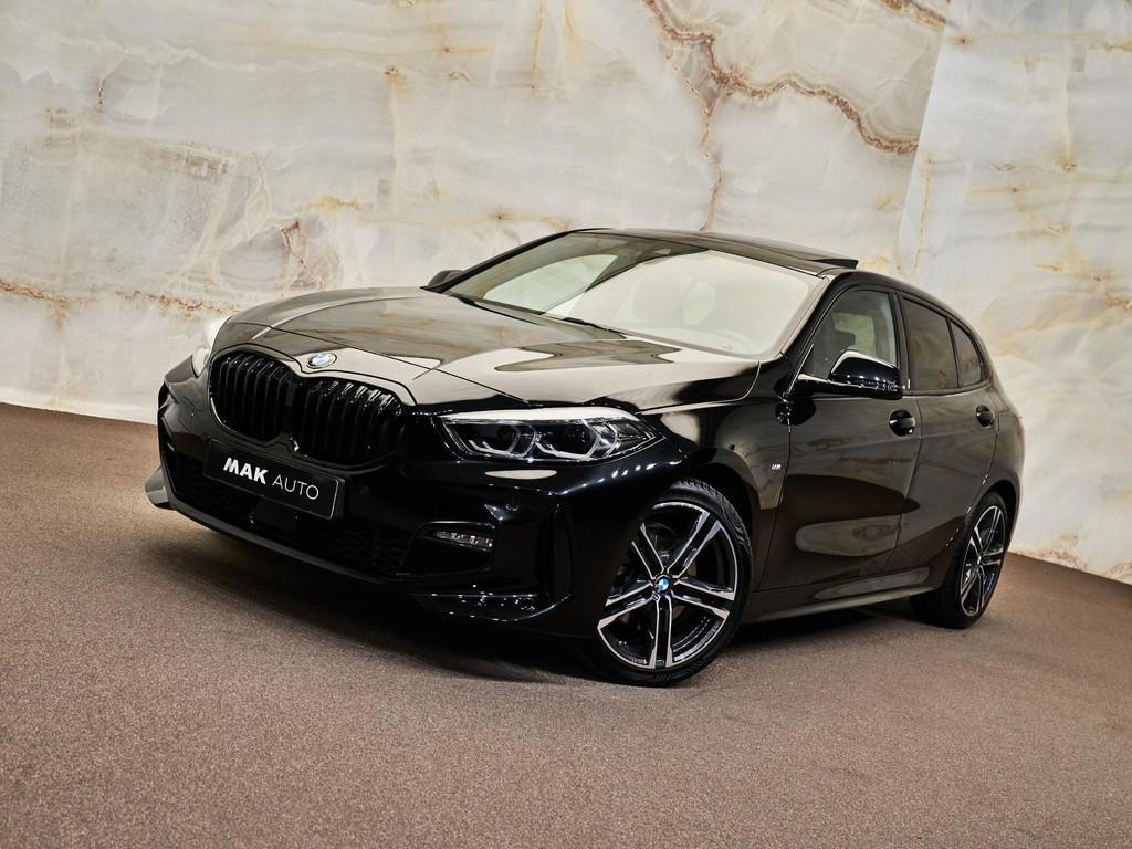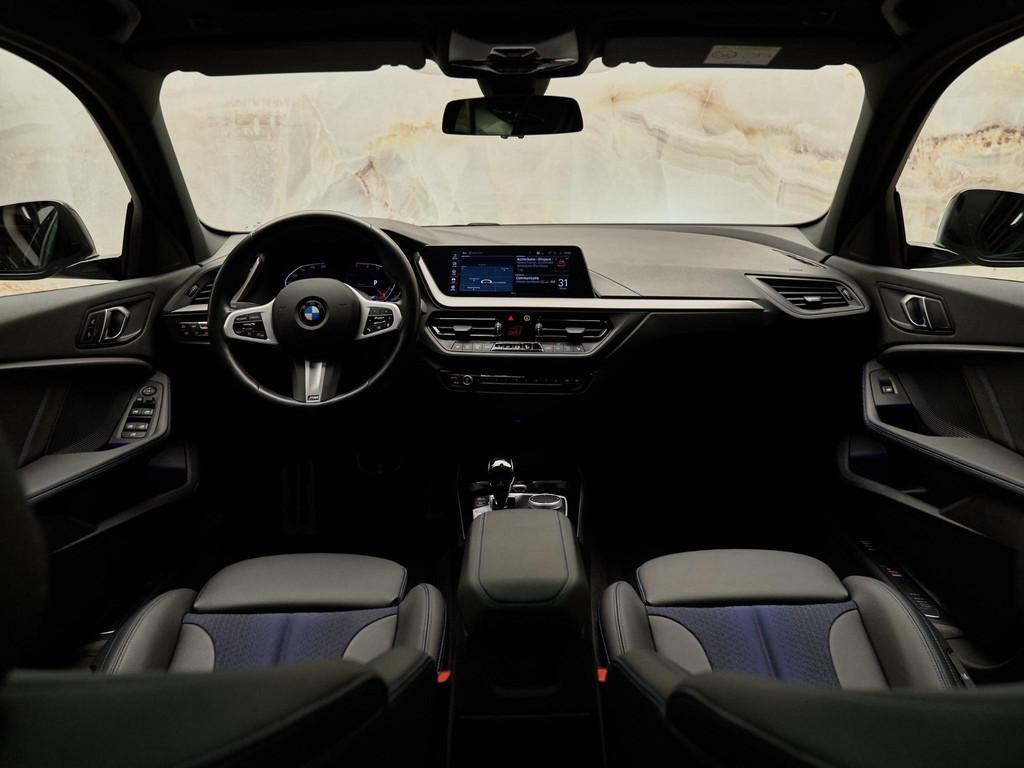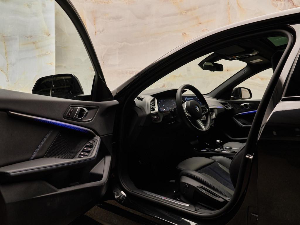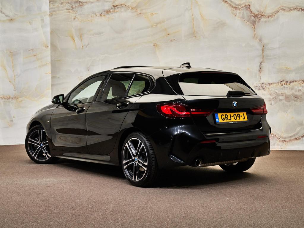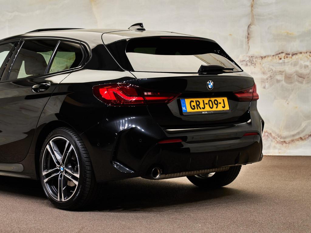 Deze 118i is uitgevoerd met het complete M Sportpakket (P7LFA), wat direct zichtbaar is in de M aerodynamiek-kit (S715A), M sport-onderstel (S704A) en het sportieve M leerstuurwiel (S710A). De exclusieve BMW LM-velgen dubbele spaak 819M OG/GG (S1RLA) in combinatie met Hoogglans Shadow Line (S760A) en M Shadow Line met uitgebreide scope (S7M9A) geven deze auto een krachtige uitstraling. Het Panoramadak elektrisch (S402A) zorgt voor een licht en ruimtelijk gevoel in het interieur, terwijl de Verduisterde ruiten (S420A) zorgen voor extra privacy en sportieve looks.