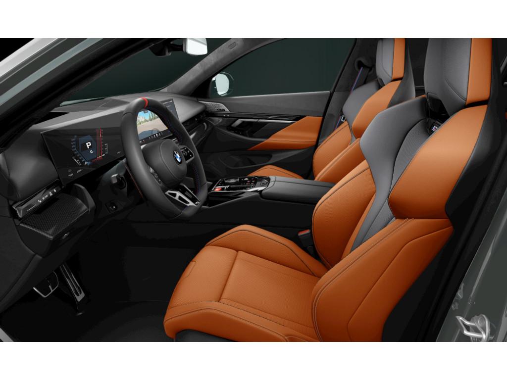 Dit betreft een zeer luxe en exclusief uitgevoerde BMW M5 Limousine V8 M Hybrid (729 pk). Kleur exterieur: Grigio Telesto Pearl Effect Metallic "Sonderlackierung" (S490A) en interieur: BMW Individual leder 'Merino' Kyalami Orange / Schwarz (LKKX). Deze auto is nieuw in Nederland geleverd, afkomstig van de eerste eigenaar en heeft slechts 8.019 km gereden. Is volledig dealeronderhouden en uiteraard is alle documentatie aanwezig. Voorzien van vele opties zoals: