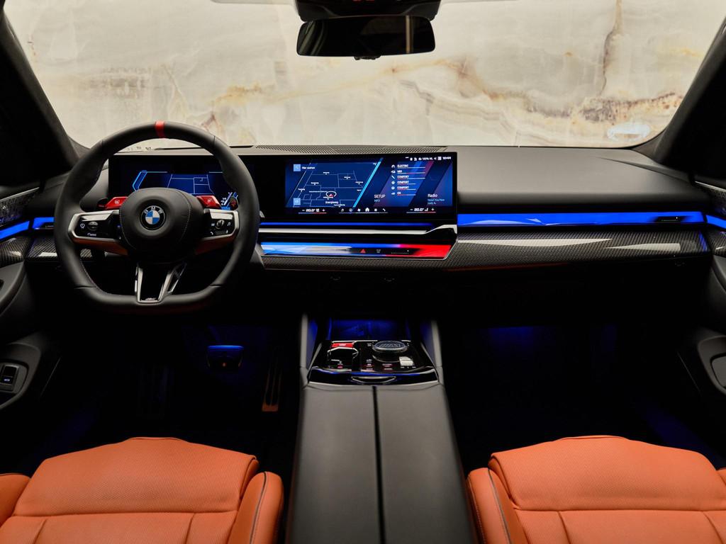 De BMW Live Cockpit Professional (S6U3A) vormt het digitale hart van deze M5 en biedt een indrukwekkende combinatie van displays, Head-Up Display en intuïtieve bediening. Dankzij het BMW Connected Pack Professional (S6C4A) profiteert u van uitgebreide online diensten. Het Bowers & Wilkins Surround Sound System (S6F4A) staat garant voor audio van referentieniveau, terwijl Wireless Charging (S6NXA) en de Personal eSIM (S6PAA) maximale connectiviteit bieden.