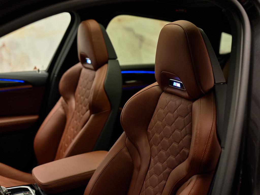Het interieur biedt een perfecte balans tussen luxe en sportiviteit. De BMW Individual uitgebreid Merino lederen bekleding in Tartufo (VATQ) wordt gecombineerd met M sportstoelen (S712A), veiligheidsgordels voorzien van M striping (S4GQA) en M interieurlijsten Carbon Fibre (S4MCA). Voor maximaal comfort is de auto uitgerust met stoelverwarming voor en achter (S4HAA), actieve stoelventilatie (S4FHA), stuurwielrand verwarmd (S248A) en het verfijnde Ambient Air pakket (S4NMA).