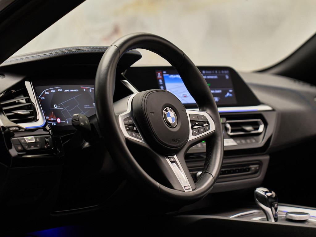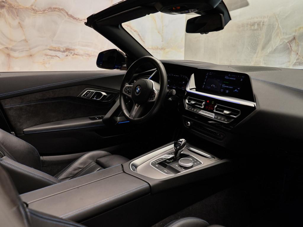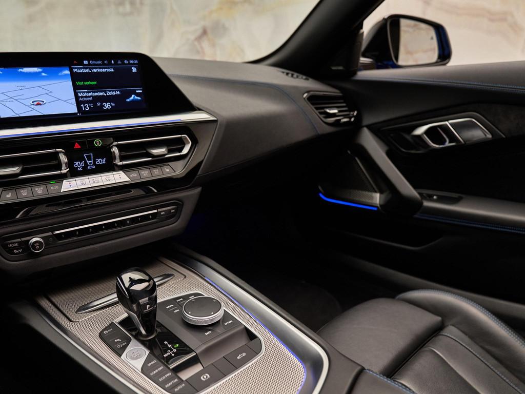 Dit betreft een zeer luxe BMW Z4 Roadster M40i High Executive (340 pk). Kleur: Misano Blau metallic (C1D) en interieur: Bekleding Leder Vernasca/alcantara combinatie Schwarz met contrasterend stiksel Blau | Schwarz (HCNL). Deze auto heeft slechts 45.430 km gereden, is volledig dealeronderhouden en verkeert in zeer goede staat. Uiteraard is alle documentatie aanwezig. Voorzien van vele opties zoals: