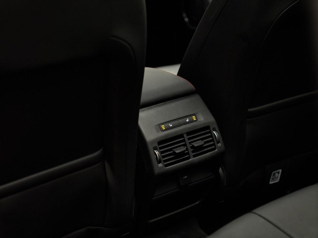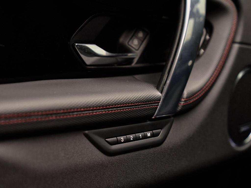 Binnenin heerst een luxueuze ambiance met Ebony DuoLeather met rode stiksels (304KL: 033PS) en een Ebony hemelbekleding (032BU: 188HD). De voorstoelen zijn 14-voudig elektrisch verstelbaar met geheugenfunctie (313AN) en verwarmd (033BV), evenals de achterbank (033XJ). De verwarmbare stuurwiel (032DV) en Dual-Zone automatische klimaatregeling (022BN) zorgen voor optimaal comfort in alle seizoenen. De elektrische achterklep (070AV) en Keyless Entry (066AC) bieden extra gebruiksgemak.