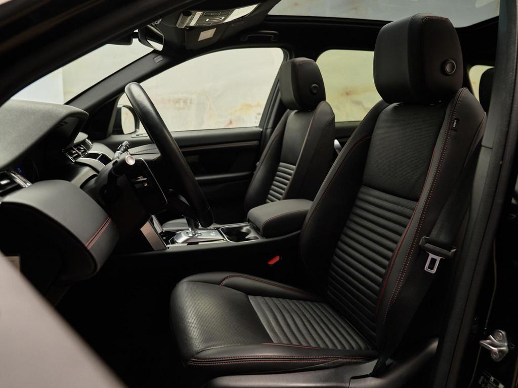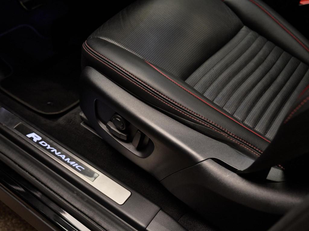 De Discovery Sport onderscheidt zich met het R-Dynamic exterieurpakket (032VV: 380AM), Santorini Black lak (1AG) en 20” Echo Viper Gloss Black velgen (031SK). De rode remklauwen (020BE) en glanzend zwarte accenten (064EG: 080ED: 080EX) versterken de sportieve uitstraling. Dankzij het panoramische glazen dak (041CX) en de Privacy Glass (047DB) oogt de auto elegant en krachtig tegelijk.