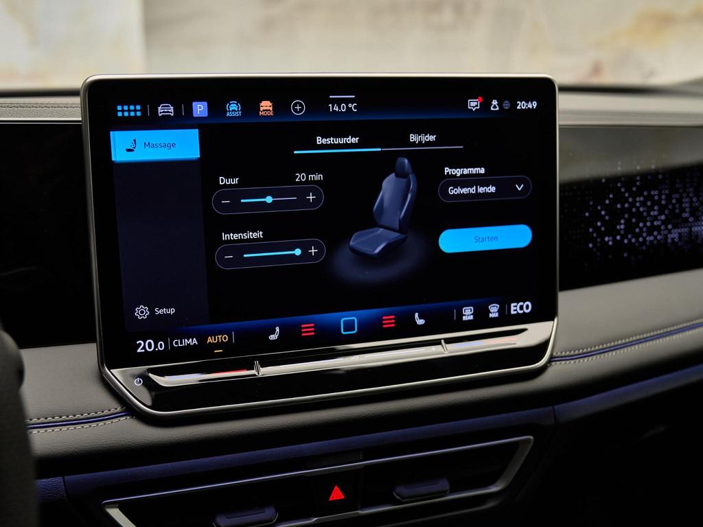 De Tiguan biedt ongekend comfort dankzij verwarmbare Comfort-Sport zetels (4D7) met massagefunctie en pneumatische lendensteunen. De elektrische kofferklep met Easy Open & Close (5I6) maakt het laden van bagage moeiteloos, en de Climatronic 3-zone airconditioning (KH7) zorgt voor een prettige temperatuur voor alle passagiers. Met het panoramisch schuif-/kanteldak (3FU) geniet u van een ruimtelijk interieur, en sfeerverlichting (QQ9) in 30 kleuren biedt een persoonlijke ambiance.