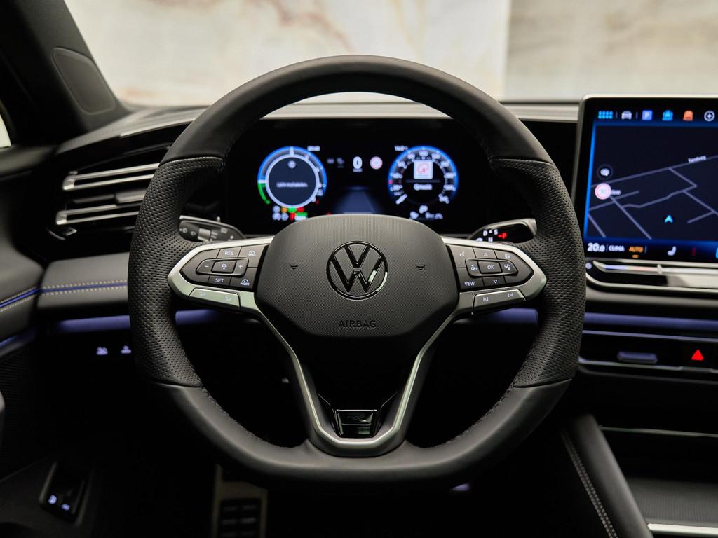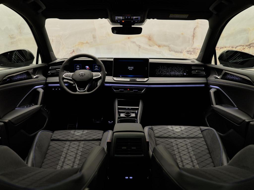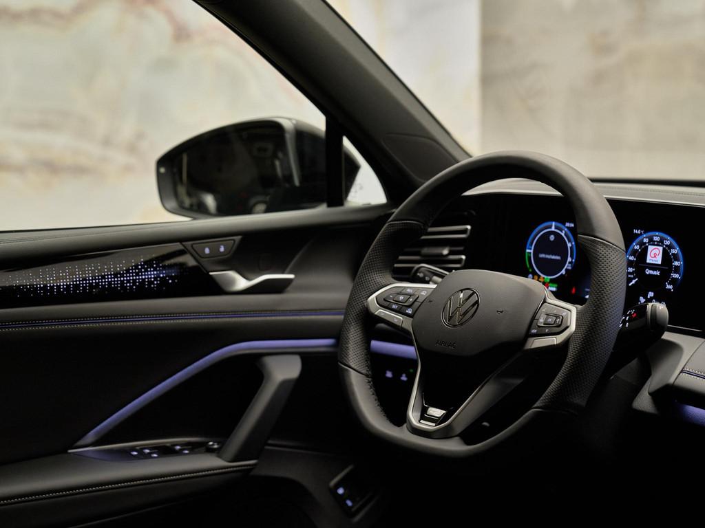 De sportieve R-Line bekleding (110) en sfeerverlichting (QQ9) in 30 kleuren benadrukken de luxe uitstraling van het interieur. Het Black Style Pakket (WBS) voegt glanzend zwarte elementen toe aan de buitenkant, en de 20-inch York velgen (PJR) zorgen voor een dynamische afwerking.