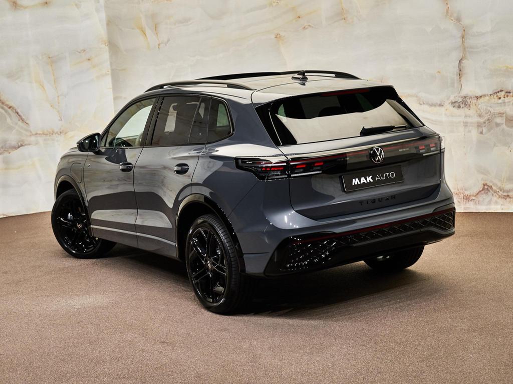 Dit betreft een zeer luxe en sportief uitgevoerde Volkswagen Tiguan 1.5 eHybrid (272 pk) in de R-Line uitvoering. Kleur exterieur: Dolphin Grey metallic (B0) en interieur met R-Line bekleding in "Soul-Black" stof (ZN). Dit betreft een nieuwe auto. Uiteraard is alle documentatie aanwezig. Voorzien van vele opties zoals: