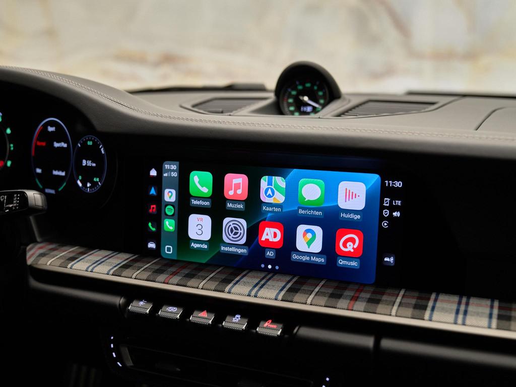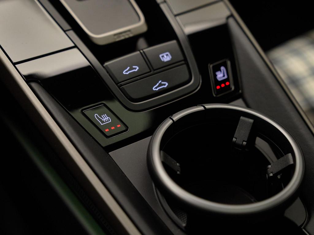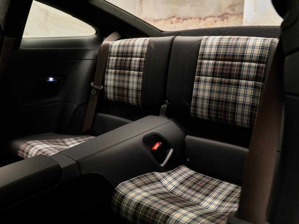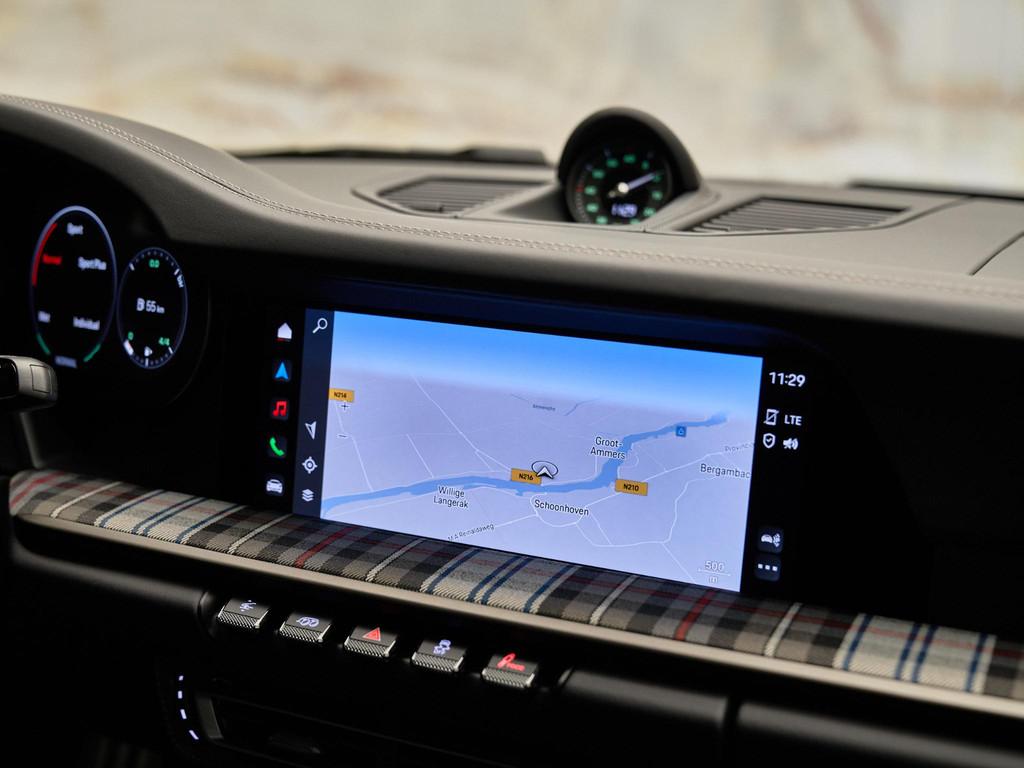 Het interieur in zwart leder met Tartan-accenten ademt nostalgie, terwijl moderne luxe aanwezig is in de vorm van het verwarmde GT-sportstuur in Race-Tex (2ZF) en het hoogwaardige Burmester® High-End Surround Sound System (9VJ) voor een ongeëvenaarde geluidsbeleving.