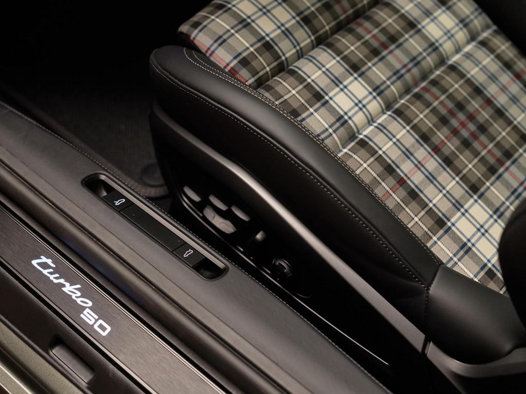 Het AGS Heritage Design pakket 50 Years Turbo (04T) en het bijpassende '50 years turbo' en 'PORSCHE' decoratieve side logo (ATB) maken van deze auto een echte hommage aan het legendarische Turbo-model uit 1974. De Aventuringroen metallic lak (U4) en de hoogglans zwarte sierlijsten rond de zijruiten (QJ4) versterken de klassieke uitstraling.