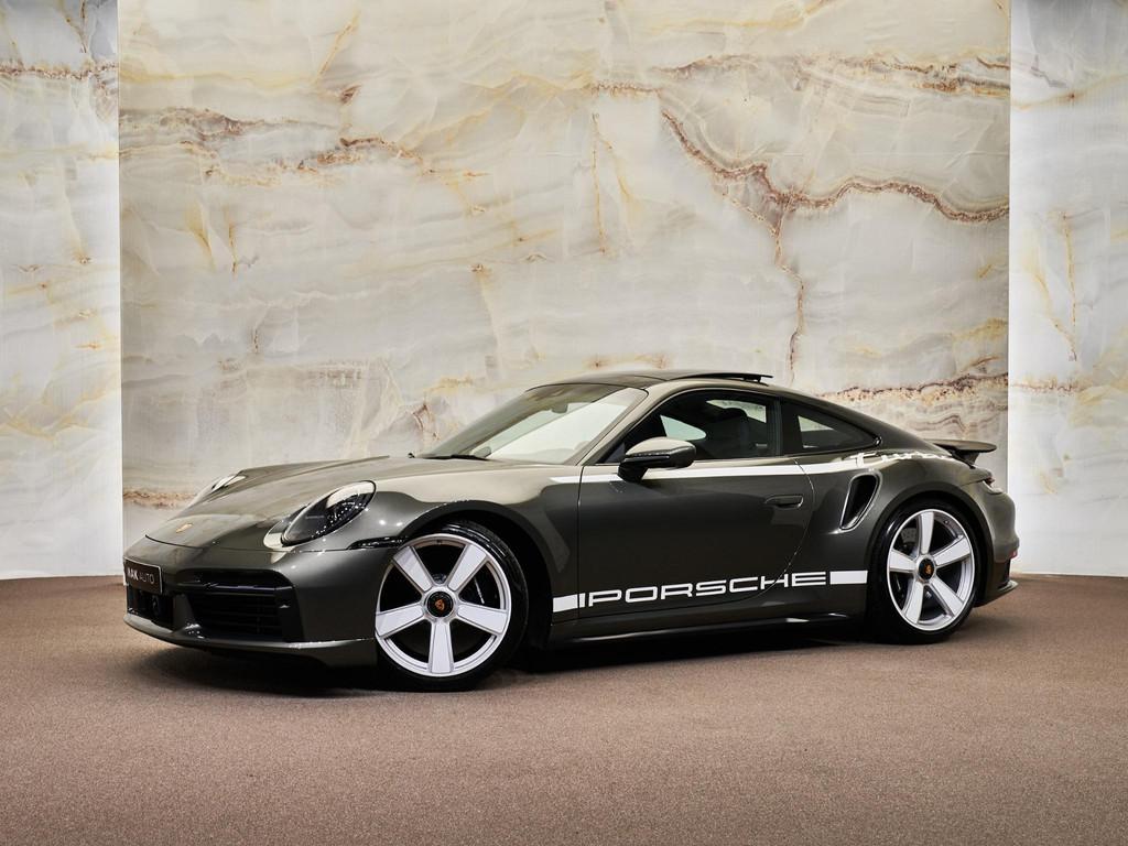 Dit betreft een zeer luxe en sportief uitgevoerde Porsche 911 3.8 Turbo S (651 pk) met Heritage Design pakket 50 Years Turbo. Kleur: Aventuringroen metallic (U4) en interieur: leder zwart met Tartan-inleg. Deze auto heeft slechts 1.163 km gereden en verkeert in absolute nieuwstaat! Uiteraard is alle documentatie aanwezig. Dit betreft gelimiteerd editie nummer 298 van 1974. Nieuwprijs circa € 404.000,-. Voorzien van vele opties zoals: