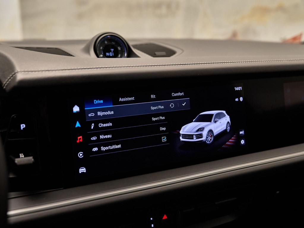 Technologisch is deze Cayenne rijk uitgerust met een 10,9-inch bijrijdersdisplay (PX2), BOSE Surround Sound System (9VL) en een Head-Up Display (KS1). Het Licht Design Pakket (QQ1) zorgt voor sfeervolle verlichting. Met HomeLink (VC2) en Surround View met actieve parkeerhulp (FT3) wordt dagelijks gebruik eenvoudig en comfortabel.