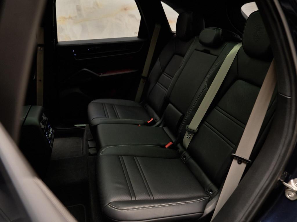 Deze Cayenne S E-Hybrid is uitgevoerd in het stijlvolle Algarve Blauw Metallic (D6) en krijgt een sportieve uitstraling door het Exterieurpakket Zwart Hoogglans (QJ4) en het SportDesign pakket in hoogglans zwart (2D5). De 21-inch RS Spyder Design-wielen (57S) versterken de dynamiek van het model. De getinte HD-Matrix LED-koplampen (8JU) en de getinte LED-achterlichten (8SB) zorgen voor een moderne high-end uitstraling, terwijl het ‘PORSCHE’ logo in hoogglans zwart (0NC) het geheel elegant afwerkt.