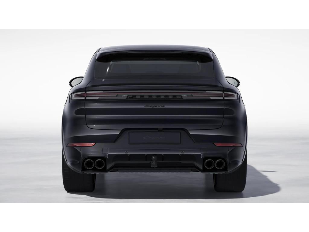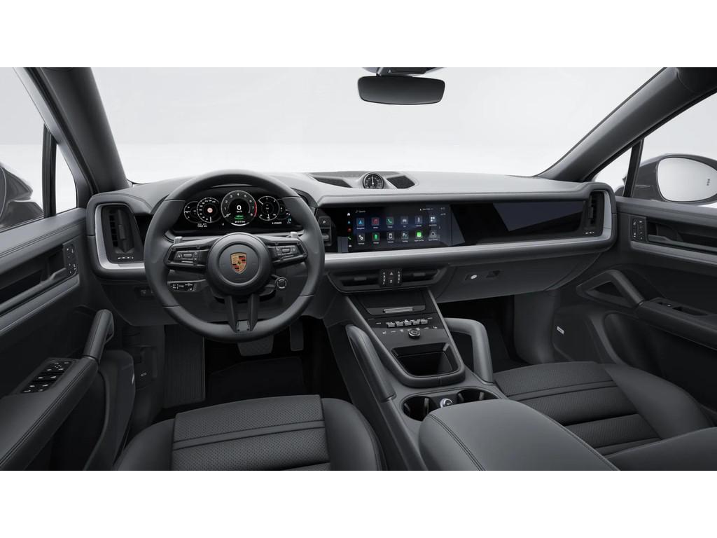 De combinatie van Chromite zwart metallic (0E) met het SportDesign-pakket in hoogglans zwart (2D5) en de donkerbronzen sporteindpijpen (0P6) geeft de Cayenne Coupé een gespierde, elegante uitstraling. De 22-inch RS Spyder Design wielen (58D) met wielkastverbreders in exterieurkleur vullen de wielkasten perfect. Subtiele details zoals het ‘PORSCHE’-logo en modelaanduiding hoogglans zwart gespoten (0NC) en de buitenspiegels in carrosseriekleur (6FU) maken het geheel af. Privacybeglazing (VW1) zorgt voor extra luxe en privacy voor de achterpassagiers.