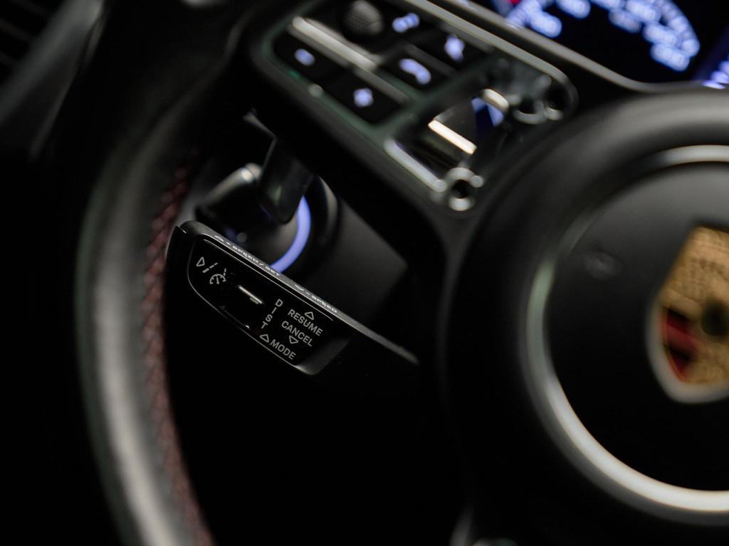 Het interieur is luxueus afgewerkt met het Interieurpakket carbon (5MH) en het Licht Design Pakket (QQ1), wat zorgt voor een hoogwaardige en sfeervolle ambiance. De Comfortstoelen achter 2+1 (3NS) bieden uitstekend zitcomfort voor alle passagiers. Extra verfijning komt van de afwijkende interieurstiksels (6RD & YZD), bordeauxrode veiligheidsgordels (FI6) en het Porsche embleem op de hoofdsteunen (5ZF). De 4-zone automatische airconditioning (9AE) en Soft-Close portieren (GZ2) maken iedere rit bijzonder comfortabel.