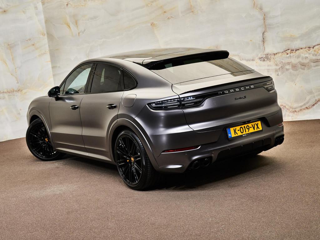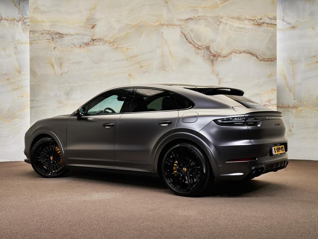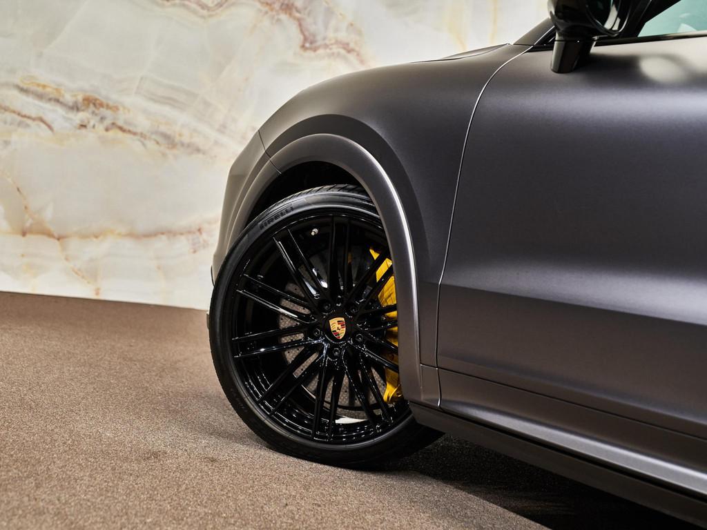 Dit betreft een zeer uniek uitgevoerde Porsche Cayenne Coupé 4.0 Turbo S E-Hybrid (681 pk). Kleur: Mat grijs gewrapt (originele kleur exterieur: Diepzwart metallic, 2T) en interieur: Volledig lederen interieur in zwart (AV). Deze auto is nieuw in Nederland geleverd, afkomstig van de eerste eigenaar en heeft slechts 78.875 km gereden. Verkeert in zeer goede staat. Uiteraard is alle documentatie aanwezig. Voorzien van vele opties zoals: