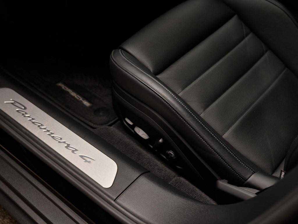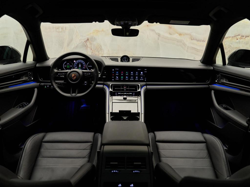 Het interieur van deze Panamera 4 E-Hybrid is gericht op maximaal comfort en hoogwaardige afwerking. De Comfortstoelen (Q2J) zijn 14-voudig elektrisch verstelbaar en voorzien van een memorypakket, waardoor altijd de ideale zitpositie kan worden ingesteld. Voor extra luxe zijn de voorstoelen uitgerust met stoelventilatie (4D3) en is het sportieve karakter benadrukt met een verwarmd GT-sportstuurwiel (2PJ). Het panoramadak (3FU) zorgt voor een lichte en ruimtelijke ambiance in het interieur.