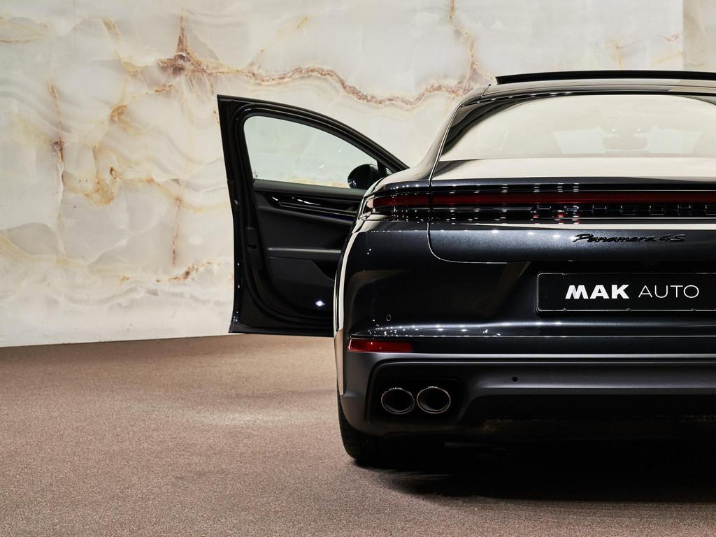 Dit betreft een uniek uitgevoerde Porsche Panamera 2.9 4S E-Hybrid (544 pk). Kleur exterieur: Vulkaangrijs metallic (2H) en interieur: Lederen interieur Zwart, glad afgewerkt leder (AO). Deze auto heeft slechts 20.569 km gereden en verkeert in absolute nieuwstaat. Uiteraard is alle documentatie aanwezig. Nieuwprijs circa € 189.000,-. Voorzien van vele opties zoals: