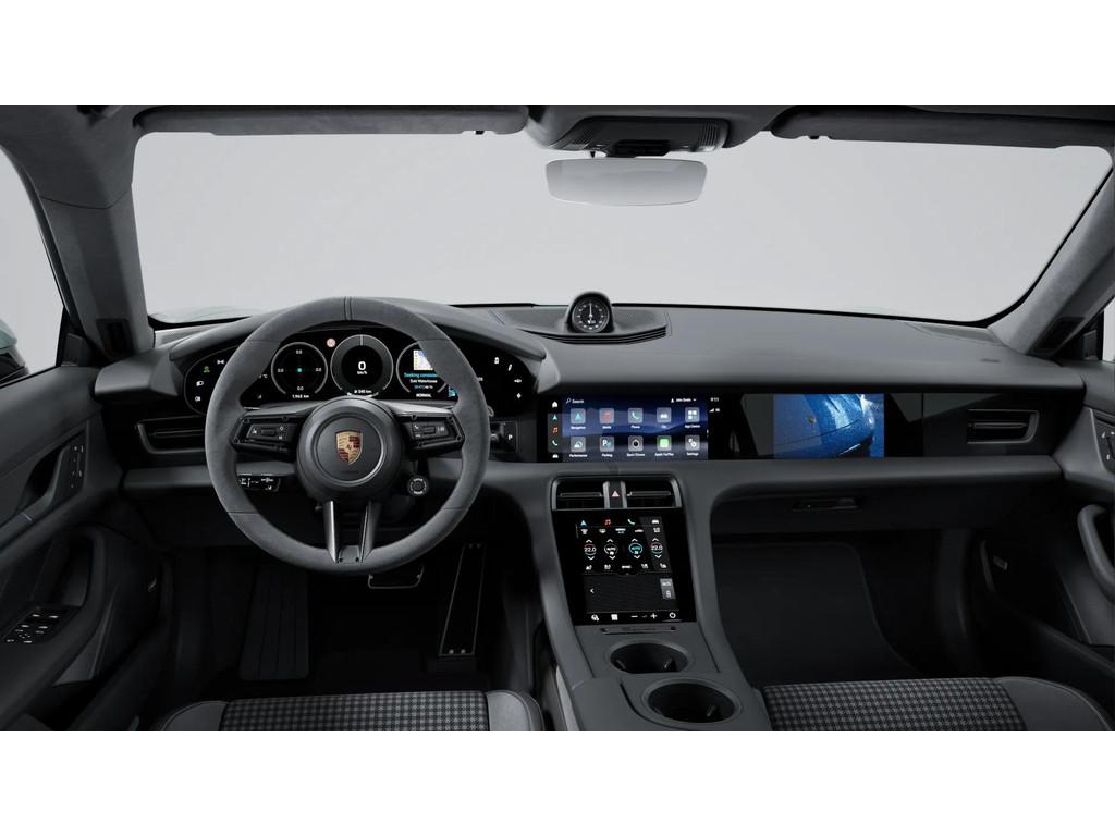 De sportieve rijeigenschappen van deze Taycan worden versterkt door Porsche Torque Vectoring Plus (GH3) en de Porsche Electric Sport Sound (GM3), die het rijgevoel extra intens maken. Met het Sport Chrono Package (8LD) – inclusief Push-to-Pass en Track Endurance Mode – beschikt de bestuurder over maximale performancecontrole. Het Sportstuurwiel in Race-Tex met mat carbon inleg (2PS) en stuurwielverwarming past perfect bij het sportieve karakter, terwijl de remzadels in hoogglans zwart (1LR) en Porsche-logo’s op de hoofdsteunen (5ZF) de details compleet maken.