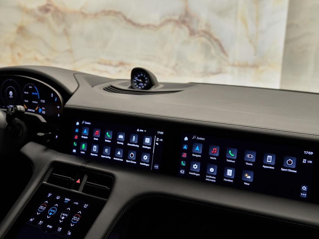 Deze Taycan is uitgerust met geavanceerde digitale technologie. Het 10,9-inch bijrijdersdisplay (JH1) maakt het mogelijk voor de passagier om navigatie, entertainment en voertuigfuncties te bedienen zonder de bestuurder af te leiden. Het Head-Up Display (KS1) projecteert belangrijke rijinformatie direct in het zichtveld van de bestuurder, wat zorgt voor extra veiligheid en comfort tijdens het rijden.