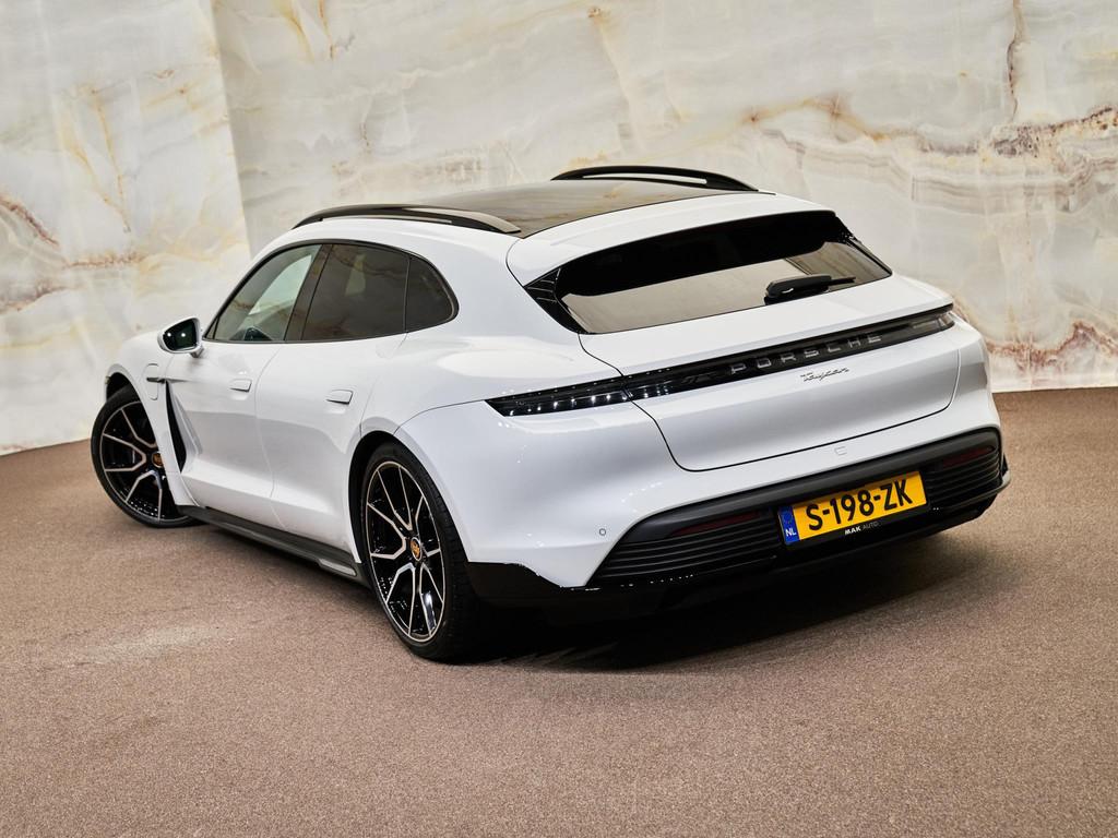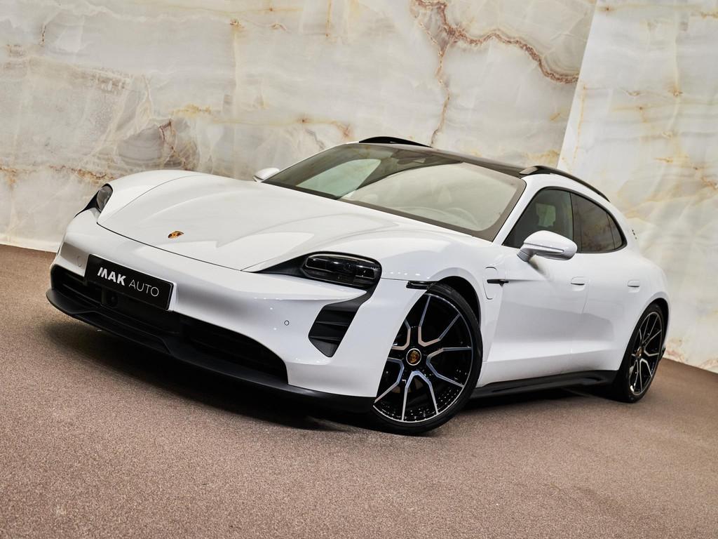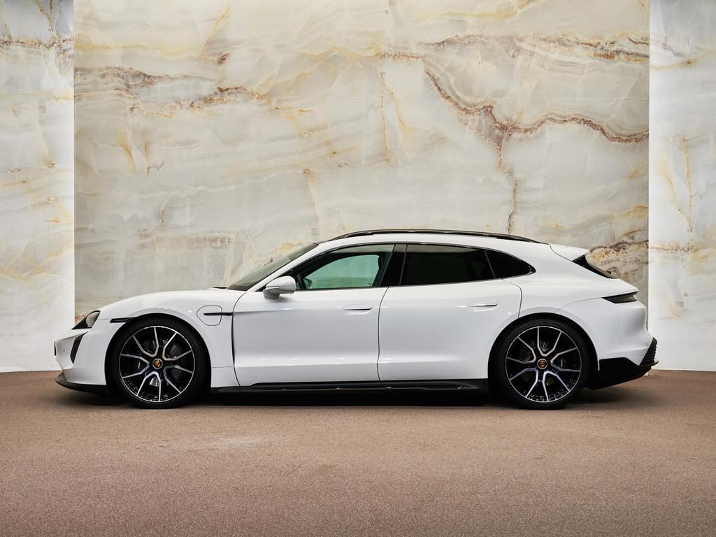 Dit betreft een zeer luxe en sportief uitgevoerde Porsche Taycan Sport Turismo (overboostvermogen, 476 pk). Kleur exterieur: Carrarawit metallic (2Y) en interieur: Glad leder interieur, zwart (AR). Deze auto is nieuw in Nederland geleverd, heeft slechts 41.796 km gereden en verkeert in zeer goede staat. Uiteraard is alle documentatie aanwezig. Voorzien van vele opties zoals: