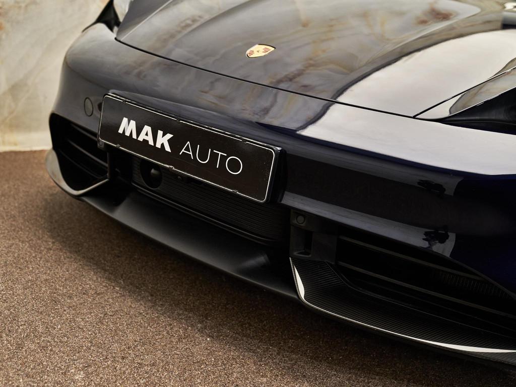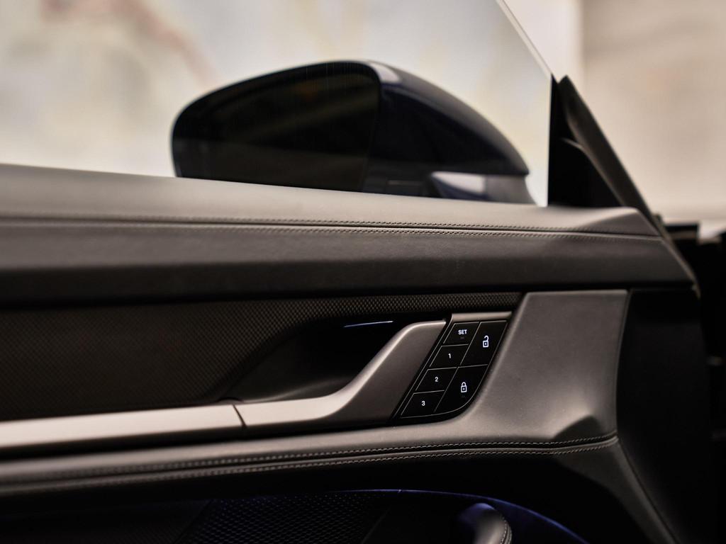 Het interieur is afgewerkt met Club lederen interieur Olea, basalt zwart, aangevuld met Dashboardbekleding leder (5HB) en Interieurpakket mat carbon (5MH). Stoelverwarming (4A3) verhoogt het comfort, terwijl Gordels krijt (FI8) en Wijzerplaat Sport Chrono wit (UP3) zorgen voor een sportieve touch. Met Porsche Entry & Drive (4F2) en HomeLink (VC2) beschikt u over extra gemak in het dagelijks gebruik. De Stuurcode individuele kleur (0UB) benadrukt het exclusieve karakter van deze uitvoering.