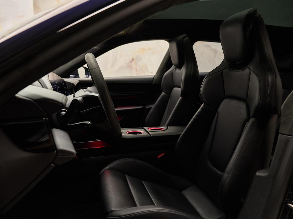 De Taycan staat op 21-inch RS Spyder Design wielen (48D) en is verder uitgerust met het Accentpakket donkerzilver (GT5) en het SportDesign Pakket carbon (2D3). De LED Matrix koplampen Glacier Iceblue inclusief Porsche Dynamic Light System Plus (8JU) in combinatie met het Licht Design Pakket (QQ1) geven de auto een herkenbare lichtsignatuur. Het Panoramadak (3FG) zorgt voor extra lichtinval, terwijl Geluids- en warmtewerend privacyglas (VW6) bijdraagt aan comfort. Praktische voorzieningen zoals Buitenspiegels gespoten (6FU), Elektrisch inklapbare buitenspiegels (6XV) en Zelfdimmende binnen- en buitenspiegels (4L6) verhogen het gebruiksgemak. Daarnaast is gekozen voor Geen modelaanduiding (0NA) en Verval van GTS aanduiding op voorportieren (6F0) voor een strakke uitstraling.