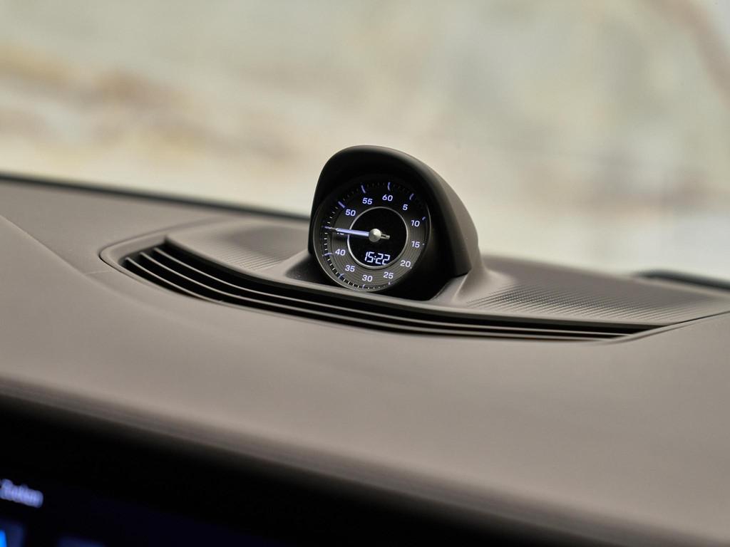 De Taycan Turbo S is uitgevoerd in Diepzwart metallic (2T), wat perfect samengaat met de in diepzwart metallic gespoten wielen (1NW). Het exclusieve SportDesign Pakket carbon (2D3) en de buitenspiegelhuizen bovenzijde carbon (6FQ) benadrukken het sportieve en high-performance karakter. De Led-matrix koplampen gletsjer ijsblauw inclusief PDLS Plus (8JU) zorgen niet alleen voor optimale zichtbaarheid, maar geven de voorzijde ook een uiterst herkenbare lichtsignatuur. Het vaste panoramadak (3FG) versterkt het ruimtelijke gevoel in het interieur, terwijl de geluid- en warmtewerende privacybeglazing (VW6) extra comfort en exclusiviteit biedt.